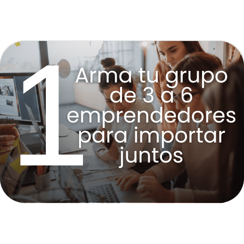 Reúne tu grupo de carga con un mínimo de 3 y un máximo de 6 emprendedores de tu entorno o confianza, siempre que entreguen en nuestros almacenes. Al importar de forma grupal, compartes los costos logísticos con los demás participantes, optimizando tus márgenes de utilidad.